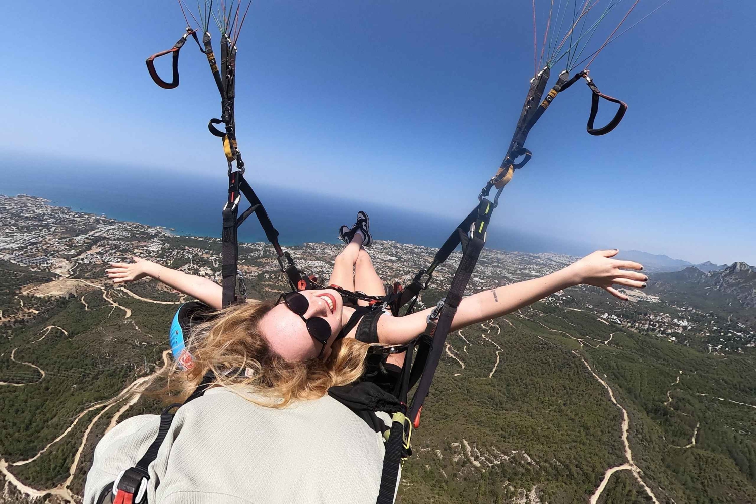 Svæv over Kyrenia med tandem-paragliding! Glid 800 meter over Middelhavet og Kyrenia-bjergene, og nyd den betagende udsigt, adrenalinen, roen og uforglemmelige minder.