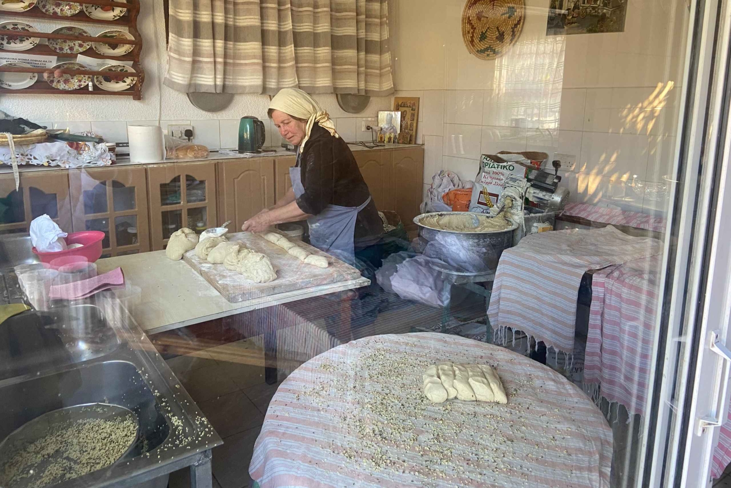 Smag lokale delikatesser som Xerotigana (donuts), Halloumi, yoghurt og Anari med johannesbrødssirup. Vær med til at bage hjemmebagt brød, som du kan nyde varmt med en dråbe olivenolie, når du kommer tilbage fra kirkebesøget. En oplevelse, der afslører hemmelighederne bag det autentiske lokale køkken.