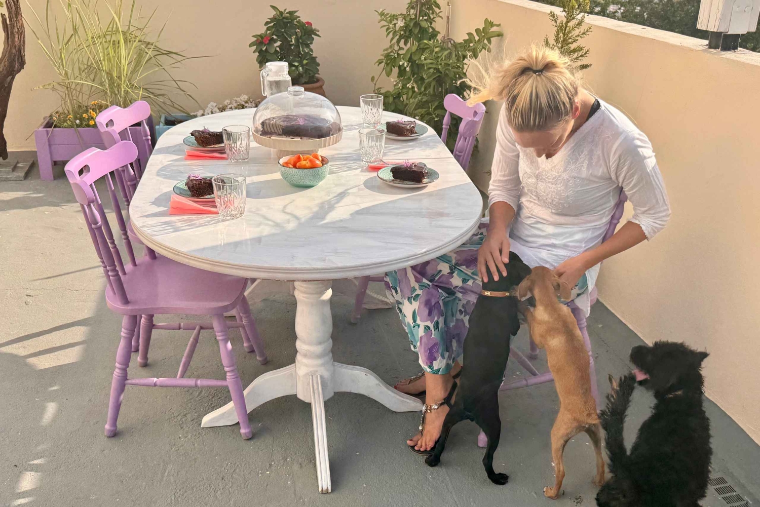 Entspanne dich in einer Villa mit Meerblick in Peyia: Genieße Kaffee, frisch gebackenen Kuchen und kuschele mit geretteten Welpen. Entspanne dich in unserem schönen Garten und unterstütze mit deinem Besuch den Tierschutz.