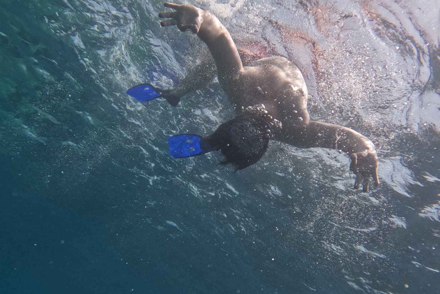 - Nutze einen bereitgestellten Seescooter, um mühelos durch das klare Wasser zu gleiten.