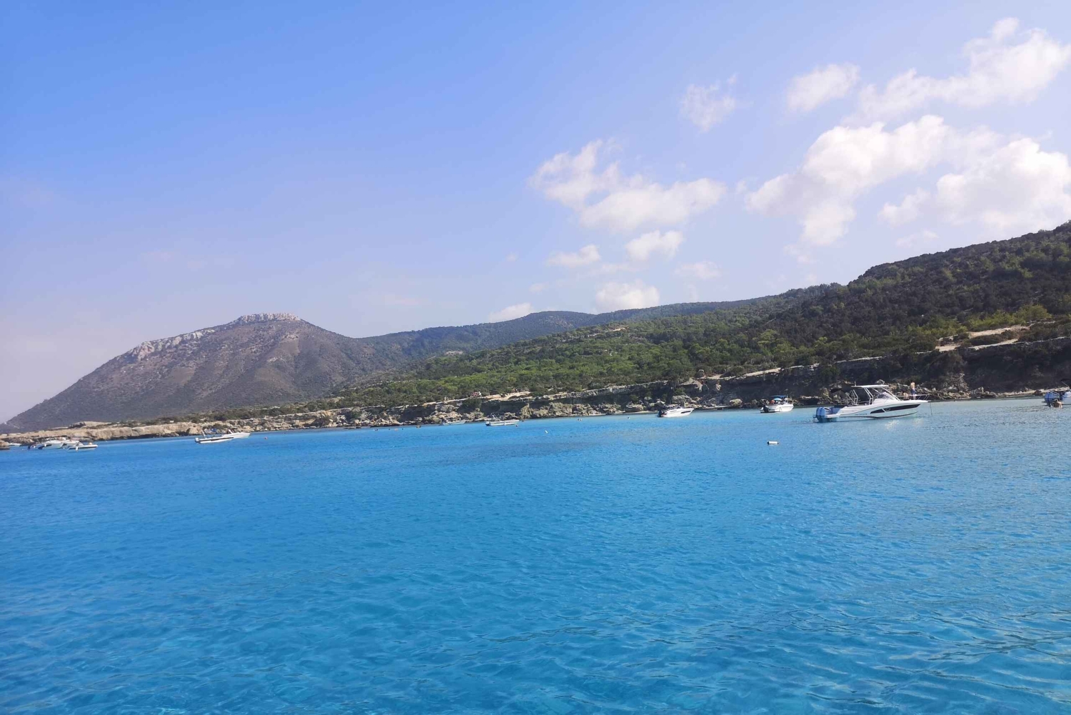 Abholung von den Hotels in Paphos, Transfer mit dem klimatisierten Bus nach Latchi, Bootsfahrt zur Blauen Lagune, Begrüßungssaft, Wein, Obst und Rücktransfer zu den Hotels in Pafos.