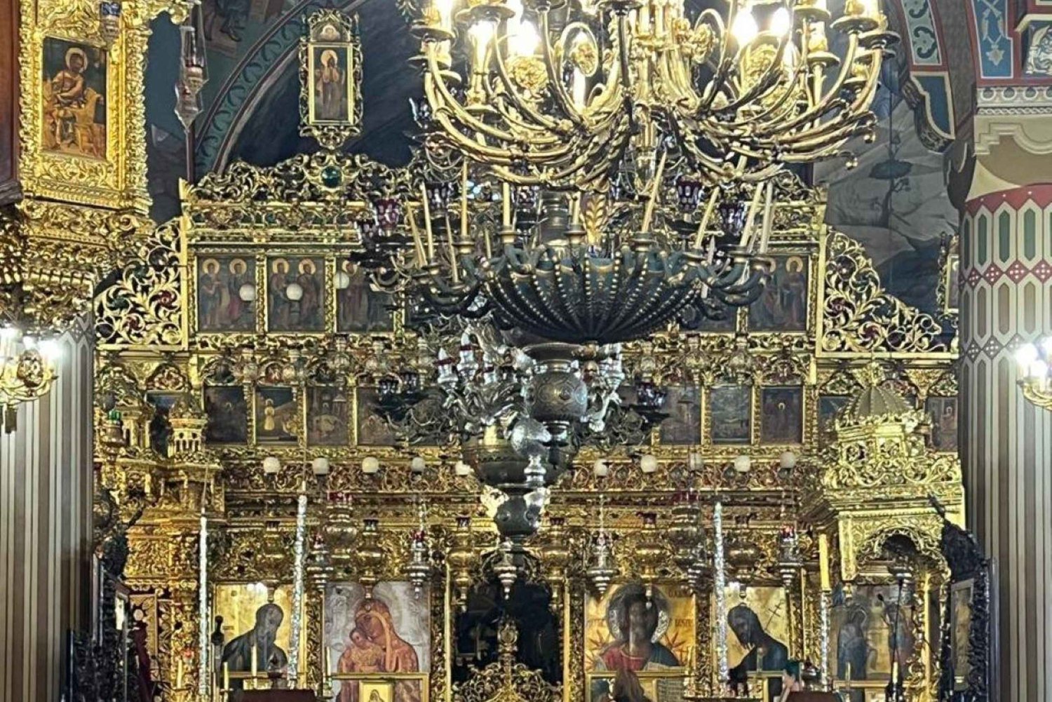 Deine Reise beginnt mit einer Kaffeepause in einem traditionellen Bergdorf, das einen Vorgeschmack auf die lokale Gastfreundschaft und die malerische Ruhe bietet. Anschließend geht es hinauf auf den Berg Kykkos, wo du das berühmte Kykkos-Kloster besuchst. Die kunstvollen Innenräume, die mit lebhaften Fresken und heiligen Ikonen geschmückt sind, sind ein Fest für die Augen. Entdecke die Legende der Ikone des „Goldenen Mädchens“, die auf mysteriöse Weise verhüllt ist, und genieße die freie Zeit, um das Gelände zu erkunden und die atemberaubende Aussicht auf die Berge zu genießen. Weiter geht's zum Throni-Hügel, wo sich das aufwendige Grab von Erzbischof Makarios III inmitten von Panorama-Ausblicken befindet.
