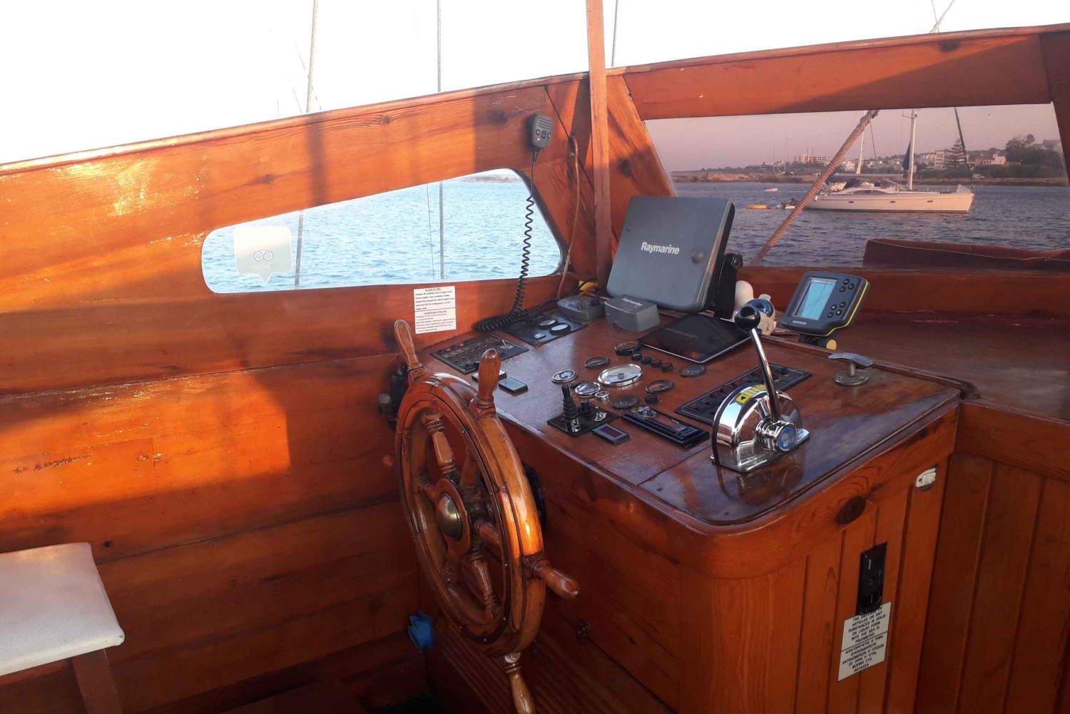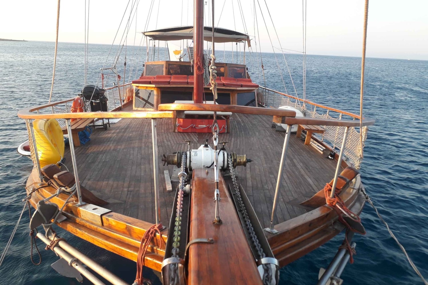 El yate Panormitis es un barco tradicional de madera hecho a mano, ideal para alquileres privados en Larnaca. El yate está equipado con todas las comodidades modernas y cuenta con un interior elegante y con estilo. Hay 6 camarotes con baño, bellamente amueblados, con aire acondicionado y mucho espacio para guardar todo tu equipaje.