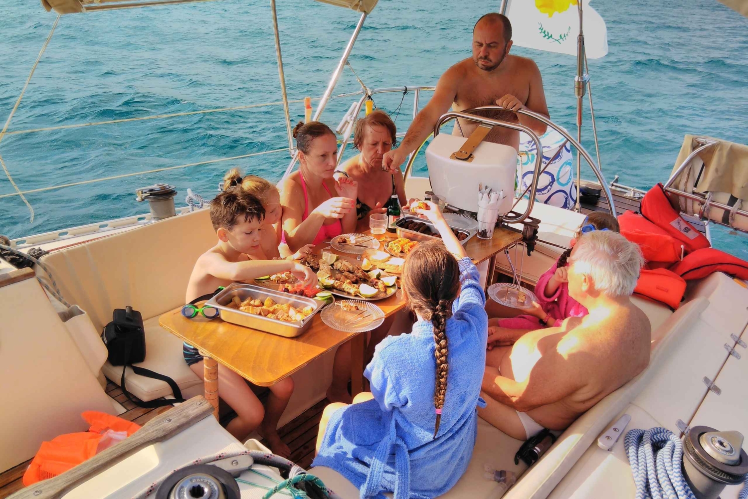 At your leisure, you can stop off to swim, sunbathe and relax on deck, or experience the wonderful underwater world with complimentary masks, snorkels and fins, which will be readily available on-board. Feast on rich Cypriot flavors with complimentary wine, beers and soft drinks.
