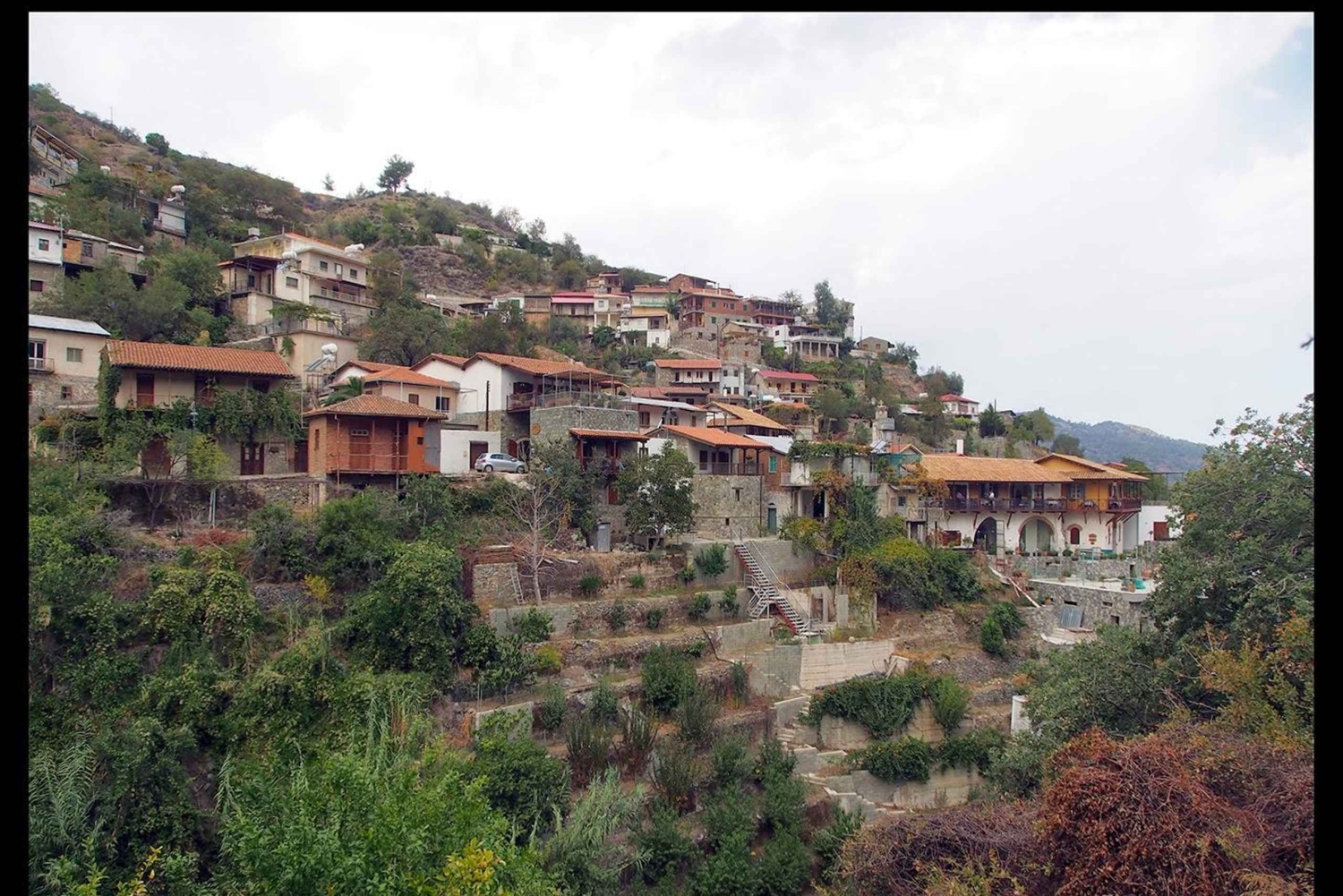 Ce village pittoresque aux maisons traditionnelles en pierre est construit dans la forêt, en amphithéâtre, au pied de la montagne de Troodos.