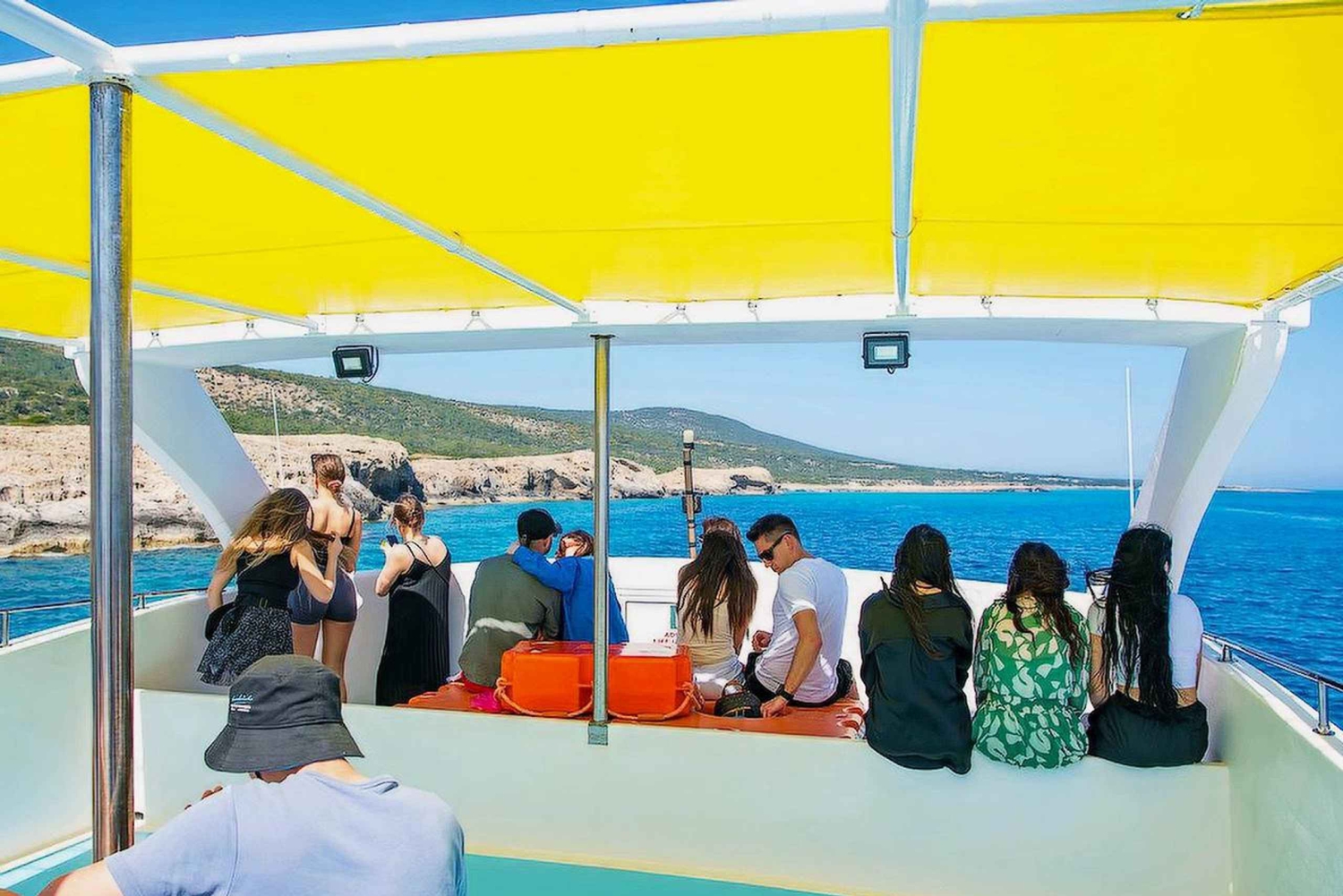 Votre voyage commence au port de Latchi, où vous embarquerez à bord du bateau Mediterranean One. Tout au long de la croisière, vous profiterez d'une vue imprenable sur la mer Méditerranée et la péninsule d'Akamas. En passant devant l'église historique Saint-Georges, vous découvrirez des faits culturels fascinants sur Chypre. Le bateau naviguera ensuite dans la baie de Plaji, qui abrite un amphithéâtre naturel qui servait autrefois de port principal de Latchi. En approchant des grottes marines de Manolis, vous serez émerveillé par les formations rocheuses sculptées par la mer, un spectacle unique le long de la côte accidentée. Le bateau se dirigera ensuite vers le célèbre Blue Lagoon, où les eaux cristallines vous inviteront à vous baigner, à faire de la plongée avec tuba ou simplement à vous détendre. Pendant la croisière, le capitaine vous offrira une délicieuse collation gratuite composée de vin, de fruits de saison et de jus. Sur le chemin du retour, vous pourrez admirer les vues pittoresques de la péninsule d'Akamas et du magnifique littoral de Latchi. Ce voyage inoubliable vous laissera des souvenirs impérissables de la beauté naturelle, de la riche histoire et de la culture dynamique de Chypre.