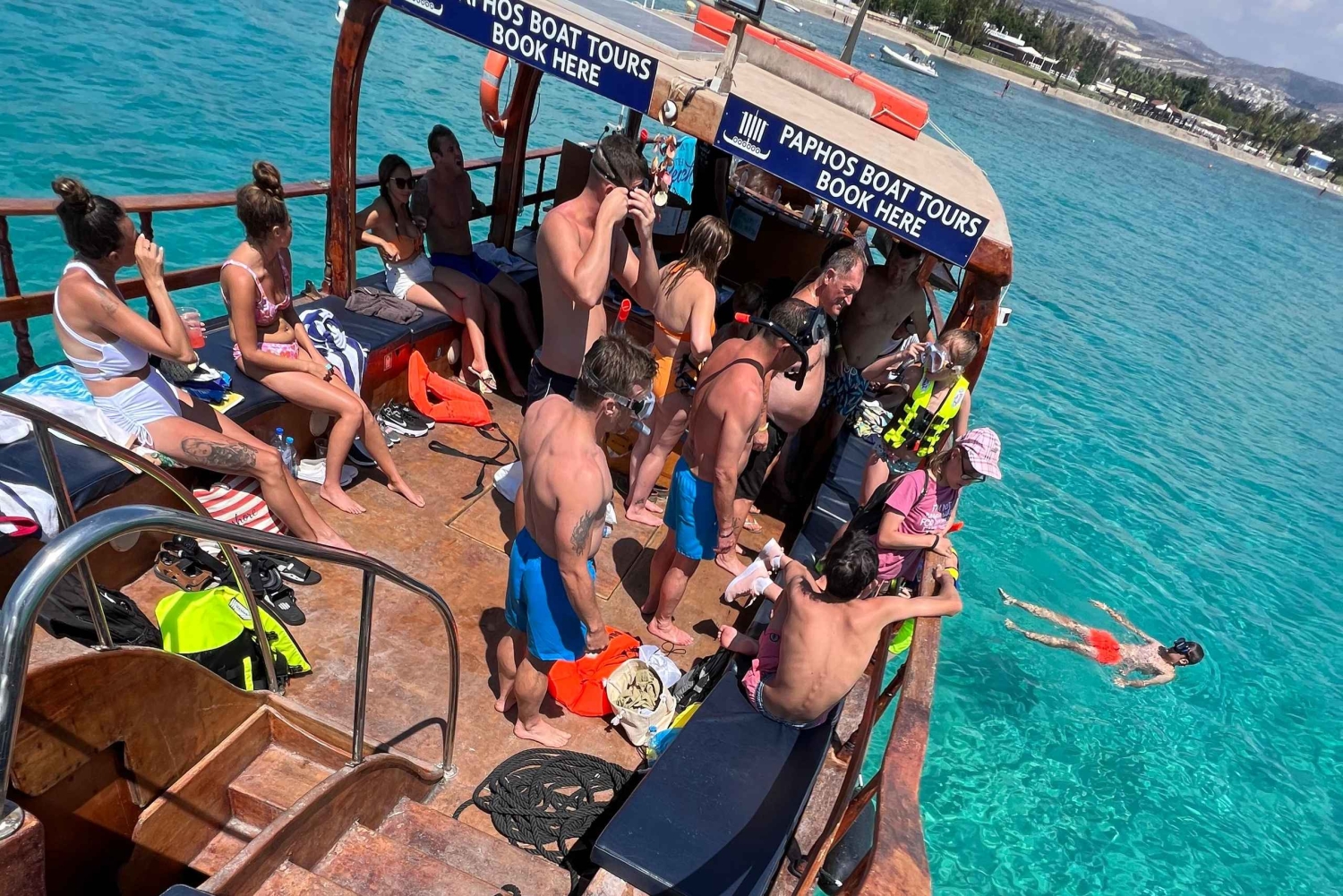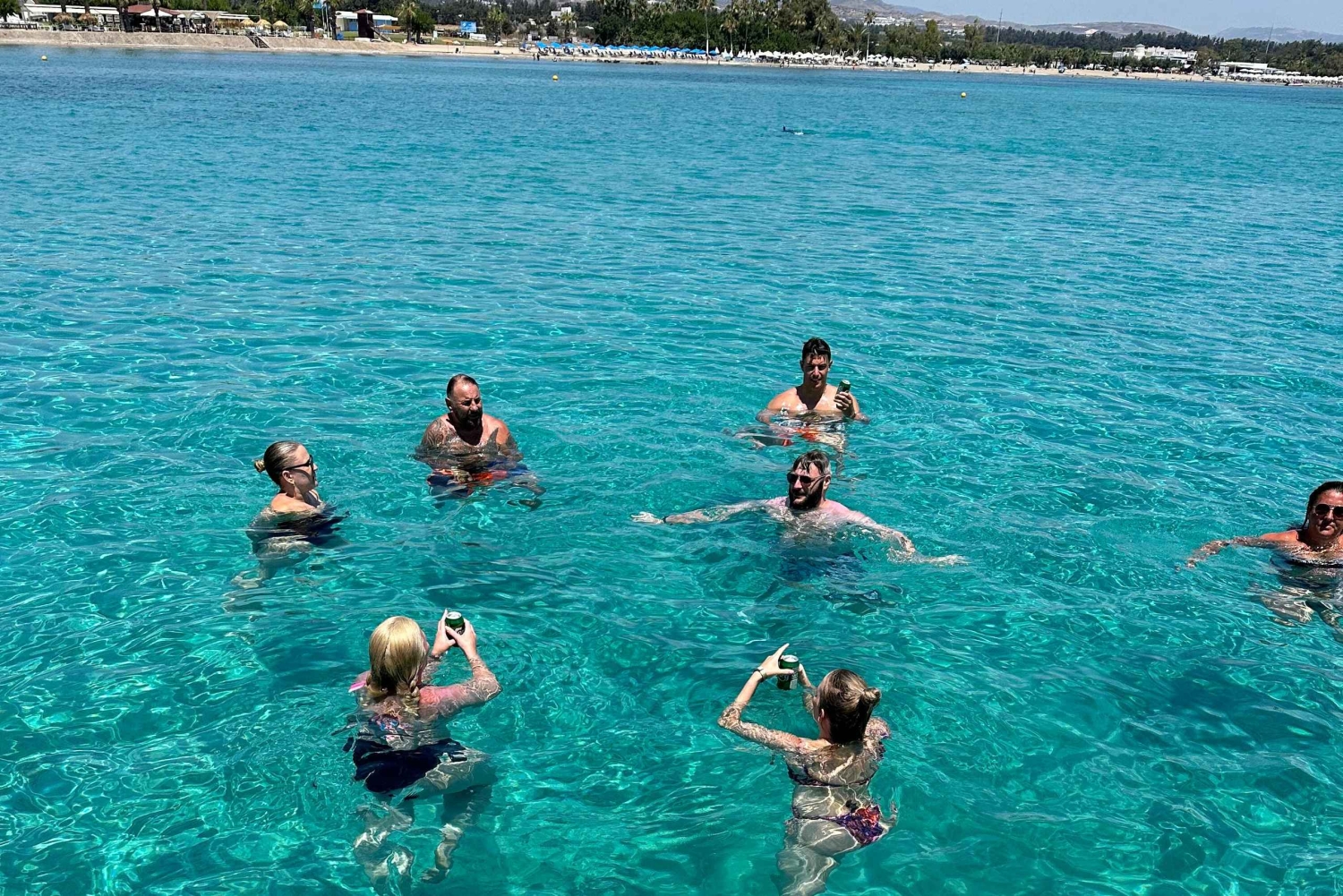 Sali a bordo di un charter privato con pranzo barbecue e open bar (bevande illimitate) e fermate per nuotare e fare snorkeling. Perfetto per gruppi che vogliono esplorare le bellissime acque di Paphos in tutta comodità e stile.