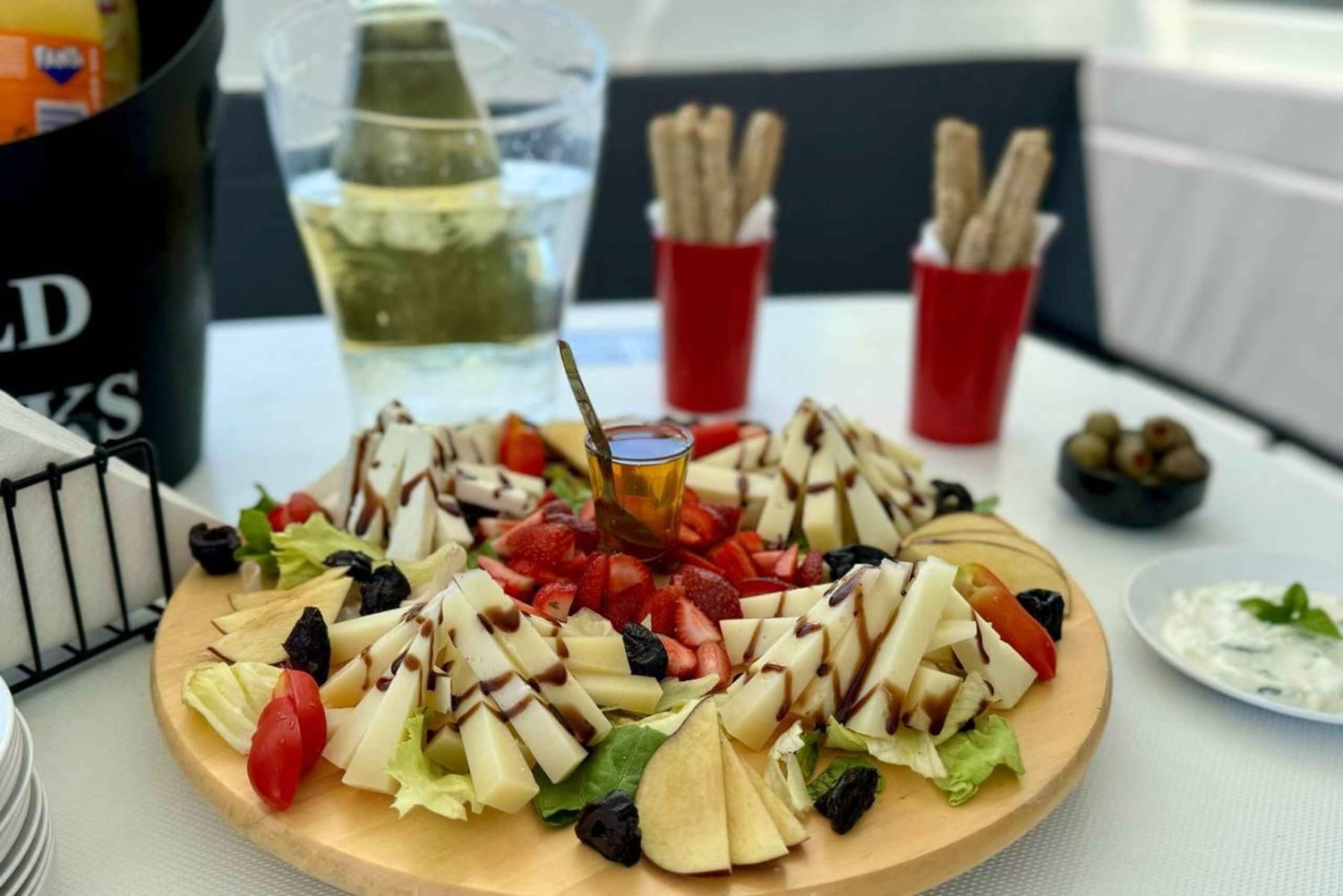 キプロスで最も美しい自然の宝物の1つであるカボ・グレコ岬に近づきながら、豪華なサンベッドでリラックスし、爽やかなドリンクを楽しみ、息をのむような美しい景色をご堪能ください。雄大な崖、自然に彫られた岩のアーチ、深い紺碧の海が、まるで魔法のような印象的な景色を作り出しています。