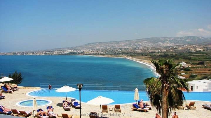 Gelegen op 50 meter van het zandstrand op een exclusieve rustige locatie tussen de haven van Paphos en Coral Bay, heeft Theo Sunset Bay Holiday Village een prachtig uitzicht op de Middellandse Zee.