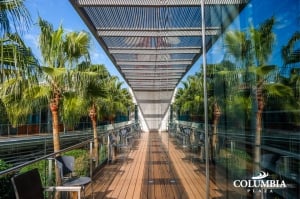 Columbia propõe uma grande variedade de opções únicas para qualquer momento do dia, qualquer dia da semana e para qualquer ocasião. Comece o seu dia com um café no Plaza Café, desfrute de massa fresca no La Boca e experimente uma refeição requintada no premiado Columbia Steakhouse. Para comida grega, dirija-se à bela taverna Avli tu Vasilea localizada mesmo em frente. Após o trabalho, relaxe com uma bebida no belo jardim do Columbia ou desfrute de música até tarde no 7 Seas.