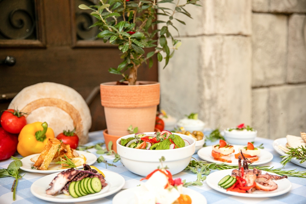 In a setting that looks like a castle courtyard, with the aroma of local herbs, Cyprus warmth and hospitality and the cool Mediterranean sea breeze, you are welcomed to enjoy a selection of delicious Cyprus meze and grills as well as à la carte dishes cooked with the finest and most fresh ingredients and local aromatic herbs.