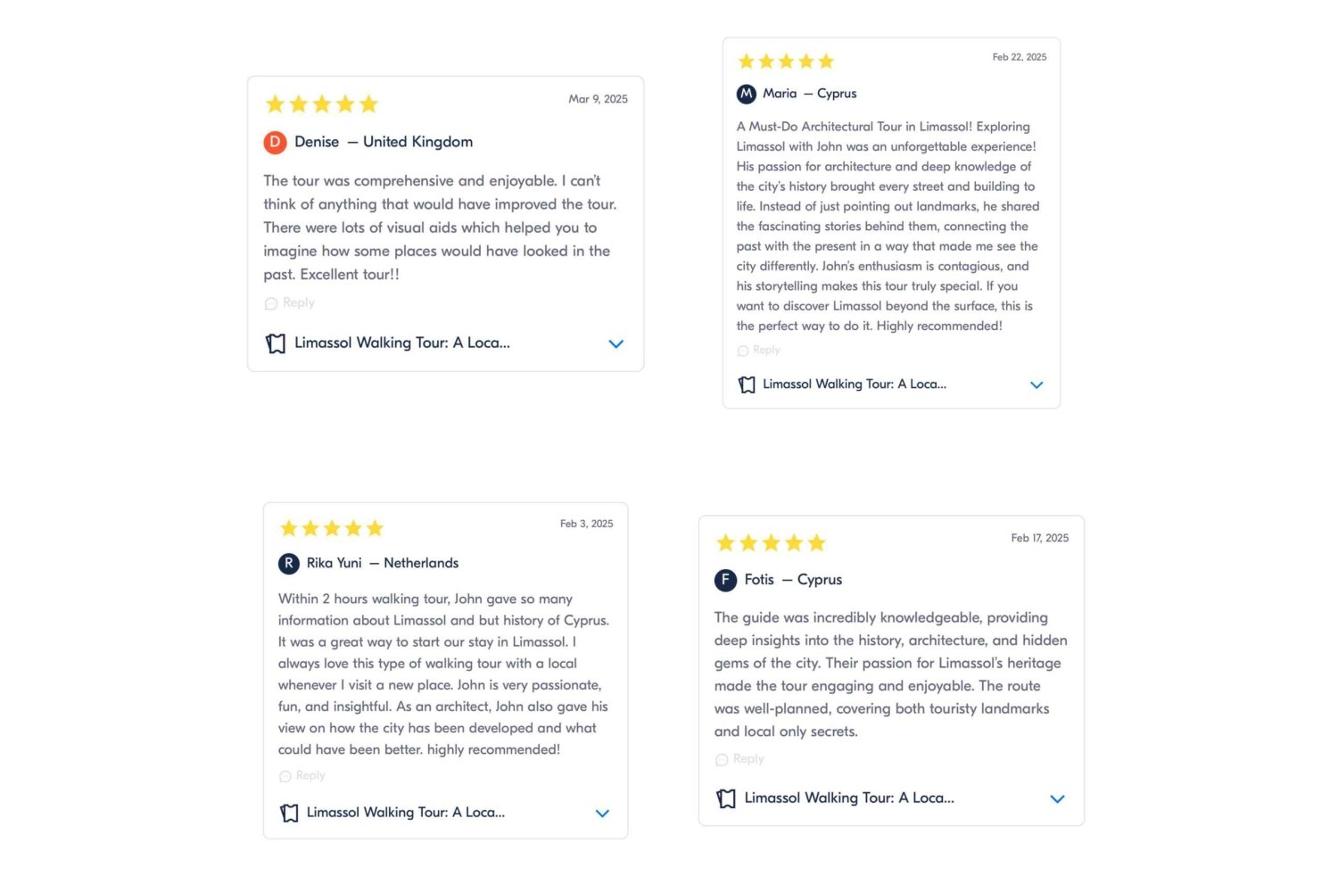 - Откройте для себя историю и скрытые сокровища Лимасола в сопровождении местного архитектора.