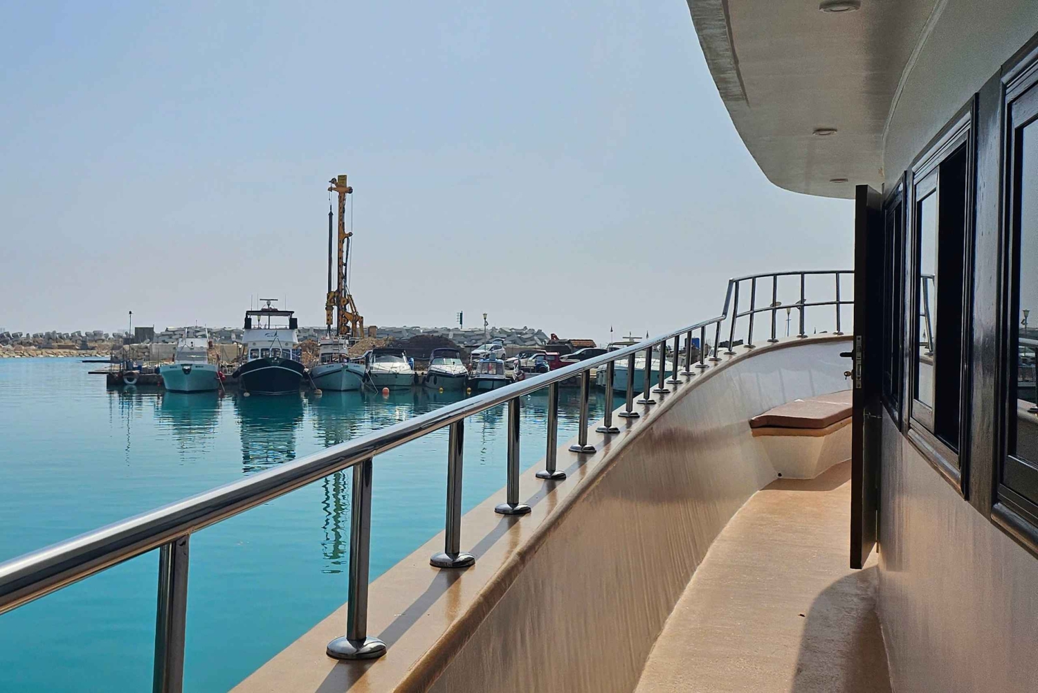 • Rymliga korridorer för rullstolar • Gratis Wi-Fi och surroundmusik • Fullt utrustad bar (drycker tillkommer) • Snorkelutrustning (inga fenor) • Omklädningsrum och 4 toaletter ️ Valfri lunch Ingår inte i standardpriset. Gäster som bokar i förväg får en färsk medelhavslunch: grillad kyckling, potatis, ris, cypriotisk sallad och bröd. Vegetariskt alternativ finns. Ta med: