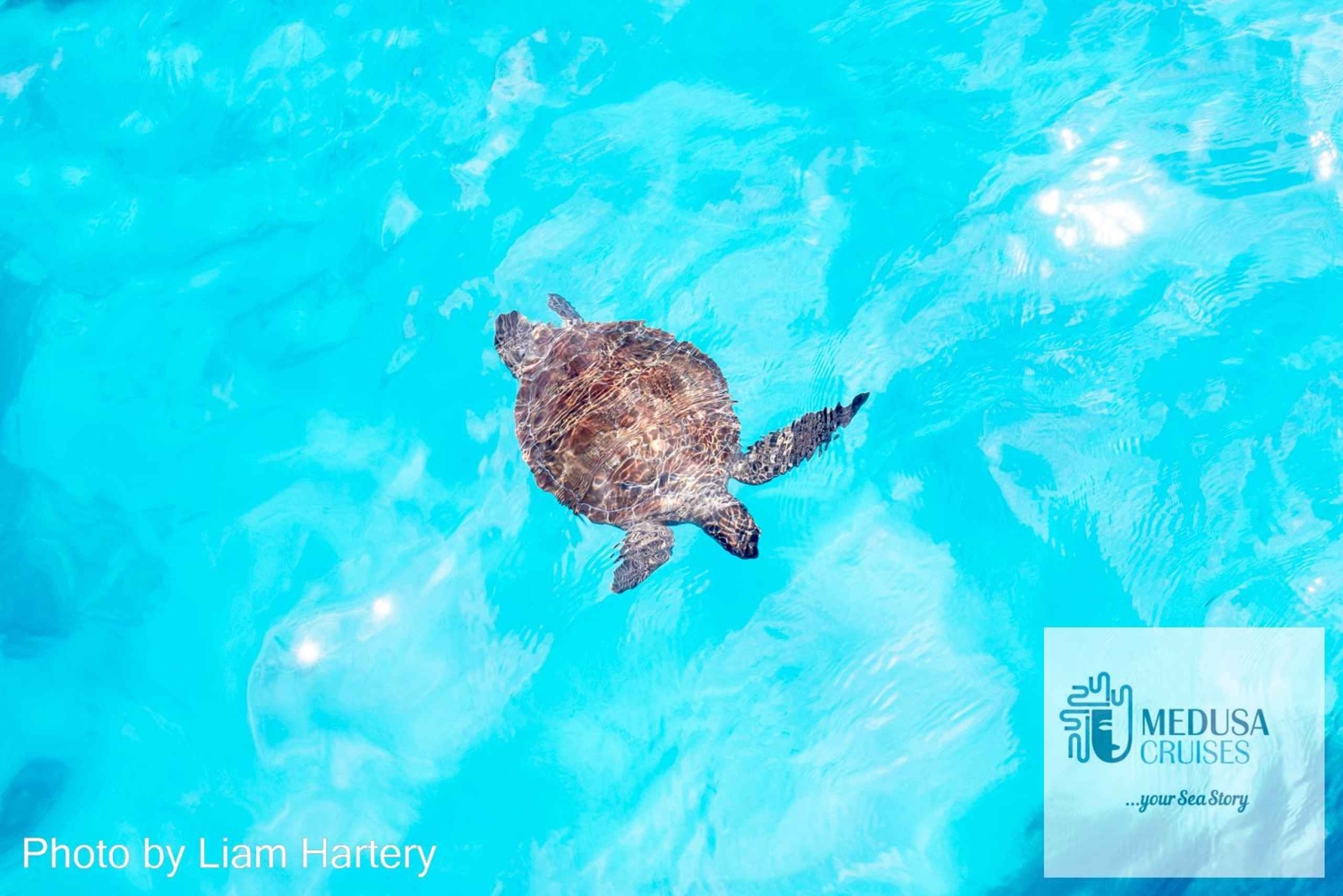 Denna 4-timmars kryssning är perfekt för par, familjer och ensamresenärer och idealisk för att släppa stress, njuta av en romantisk semester eller uppleva en mild och helande upplevelse. Simma med sköldpaddor i deras naturliga miljö (hållbar sköldpaddsvård är viktigt!), ta fantastiska bilder av leksamma delfiner och glid förbi dramatiska havsgrottor och ikoniska landmärken. Njut – Koppla av – Upptäck Vår noggrant utvalda rutt inkluderar: • Famagusta Viewpoint (gränslinjen)
